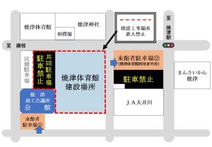 令和7年10月より、焼津体育館移転工事に伴い、駐車場が変更になります。